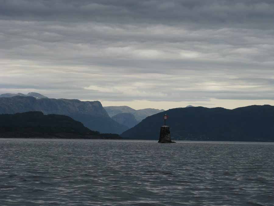 At the west end of Folsund I had to leave the protection of the islands and venture out into Bufjorden. The obvious route was to the south down Krakhellesund, but Rich had advised against this as it could be a boring slog in a headwind and it was also the shipping lane. He suggested I head out to the islands of Solund where there were masses of channels and islets and much better nature. He was very knowledgeable so I believed him. However it meant crossing Bufjord.