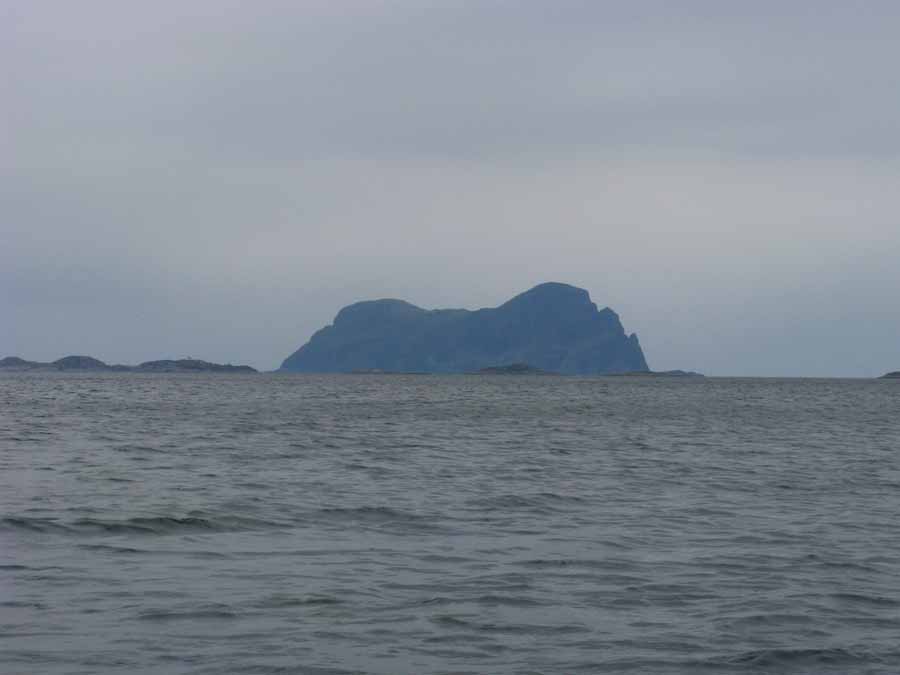 It took about an hour to complete the remaining 3 km of this otherwise simple crossing and it was not until I was only a few hundred km from Leknessund that the waves and then the wind eased. To the south the main channel and the rest of the island of Sula looked very dramatic and stark. That was not an idyllic landscape of green fertile soils and fjord but towering buttresses of bare grey rock over a dark fjord. It looked very Wagner.