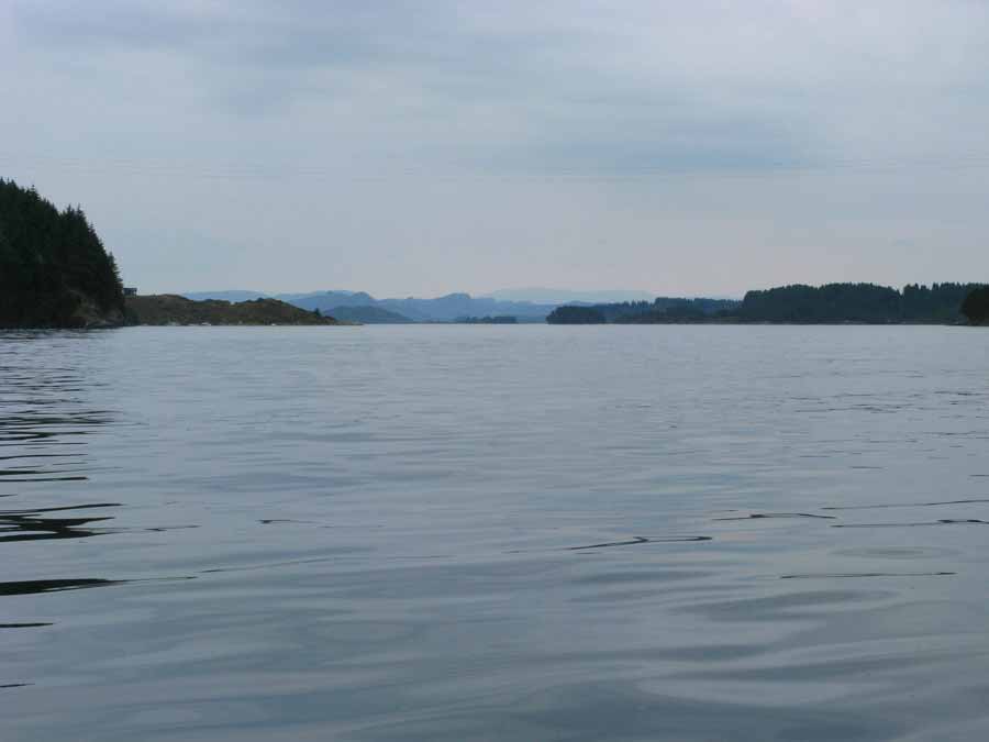 There was quite a current here and it was against me now as the basin was filling again. It lasted for about 2 km and at times I had to paddle hard to keep moving forwards. Eventually I passed under the high bridge and paddled into the relatively still waters on the larger Radoyfjord.