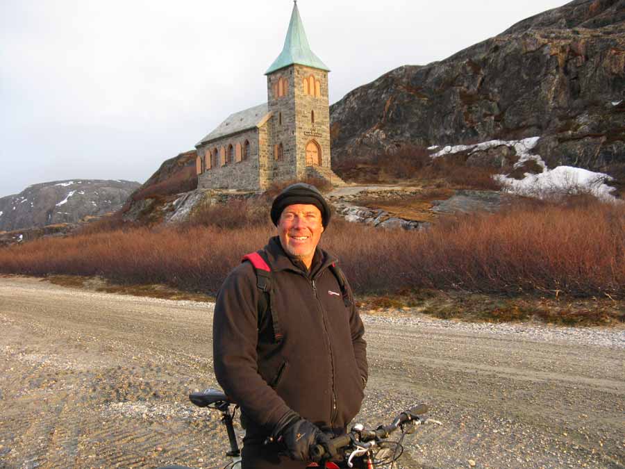 Just before the beach James caught up at the Oscars Kapell, the much photographed church built to try and encourage a community and establish sovereignty some 100 years ago. Just beyond was the beach. It was a kilometer of fine sand with a couple of smaller beaches nearby. It is one of Norway’s finest beaches. It was also the end of the road both in reality and for the rather fraught 400km bike ride from Mehamn.