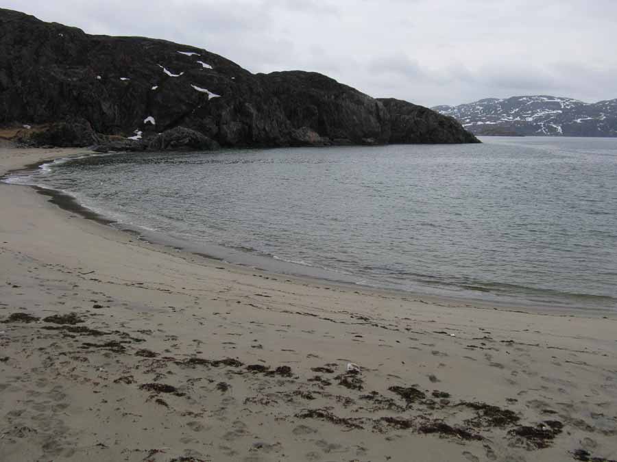 After supper I went for a walk along each of the beaches. At the far end of the bigger beach was the Jakobselv river and beyond that a Russian lookout post on a knoll. The smaller beach was perhaps the nicer of the two as it was more sheltered and was hemmed in by outcrops.