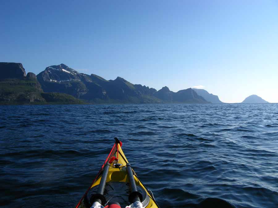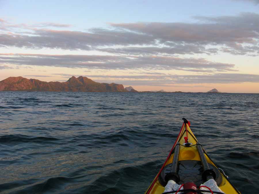 I put the tent up here and enjoyed the view southwards. It was of the Northern parts of the very picturesque Helgelandskyst, and it was basking in the glow of the midnight sun. Helgelandskyst is the next stage and it is reputed to be the best bit of the Norwegian coast and one of the top five kayaking destinations in the world. It is a mass of some 20,000 islands which offer beaches and protection. I have been looking forward to it for ages.