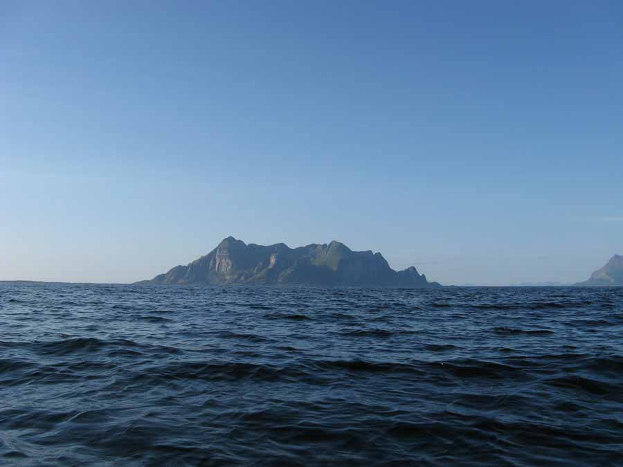 I expected it to be quite choppy round the north of the Kunna peninsula. I was now at the very edge of Vestfjord and the shelter granted by the string of Lofoten islands was negligible. Indeed the other extremity of this fjord, the tip of the lobster’s claw on Moskenesoy at the end of the Lofoten Islands which enclosed the vast Vestfjord, was perhaps 100 km away now. It was essentially open ocean and the swell was almost 2 metres.